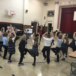 With the 6th 7th and 8th grade students Miss Lizzie also did a few “snapshots “ in drama which the kids enjoyed very much. She holds degrees in Dance and Theater.